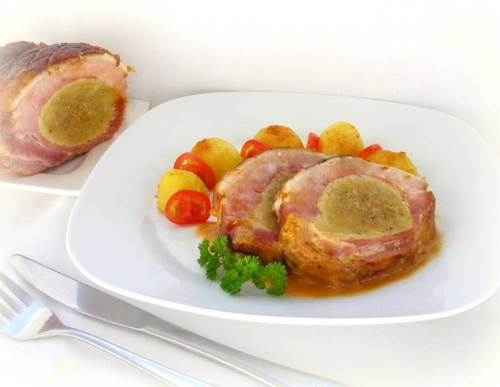 Als Beilage zu gefülltem Schweinsbraten passen Semmelknödel, Kartoffeln, Brot und Sauerkraut. Das würzige Fleisch schmeckt kalt mit Bauernbrot, Senf und Gewürzgurken auch sehr lecker.