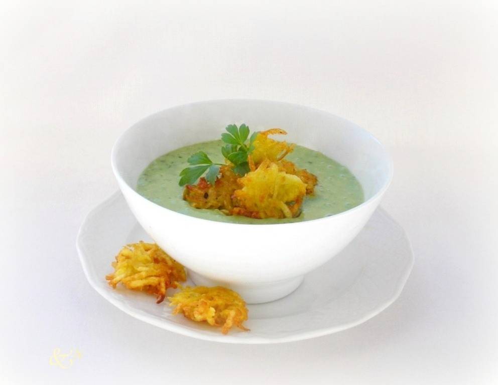 Die Bärlauch-Petersiliensuppe mit Kartoffelrösti schmeckt verführerisch gut. Ist schnell gemacht gesund und günstig.
