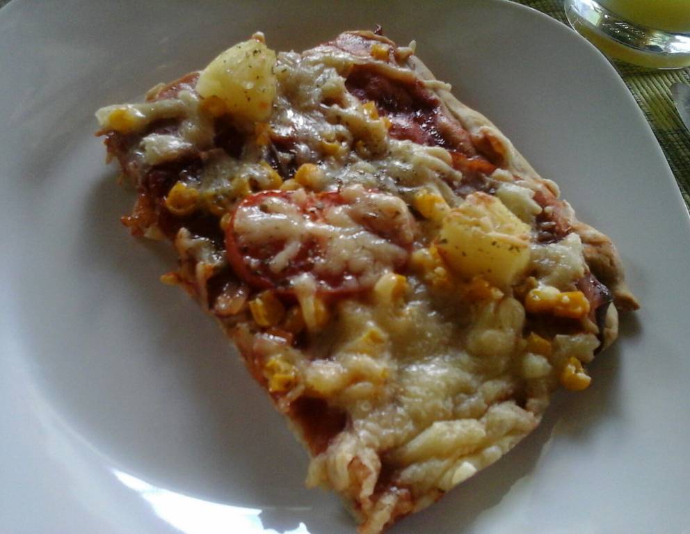 - Als nächstes fein geschnittenes Geselchtes, Wursträder, Mais, Thunfisch, halbierte Babytomaten, geriebenen Käse und Pizzagewürz darauf verteilen. Bei rund 180 Grad ca. 25 Minuten bei Heißluft mit Unterhitze backen.
