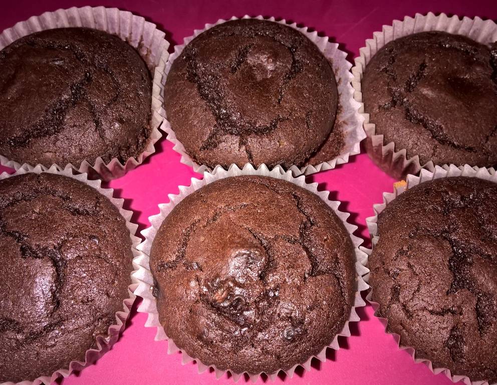Die Schokolade Muffins kann man auch mit gehackten Nüssen zubereiten, ganz nach Belieben.