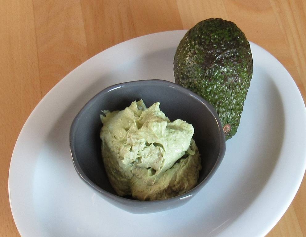 - Das Fruchtfleisch der Avocado zusammen mit dem Topfen, dem Saft der halben Zitrone sowie der Zitronenschale und dem gepressten Knoblauch in einem Multihacker oder mit einer Gabel vermischen.