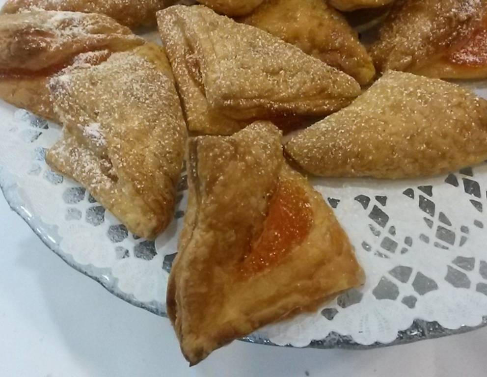 - Dann die Teigstücke zusammenfalten sodass Dreiecke entstehen. Die Ränder gut andrücken damit die Marmelade beim Backen nicht herausrinnt.