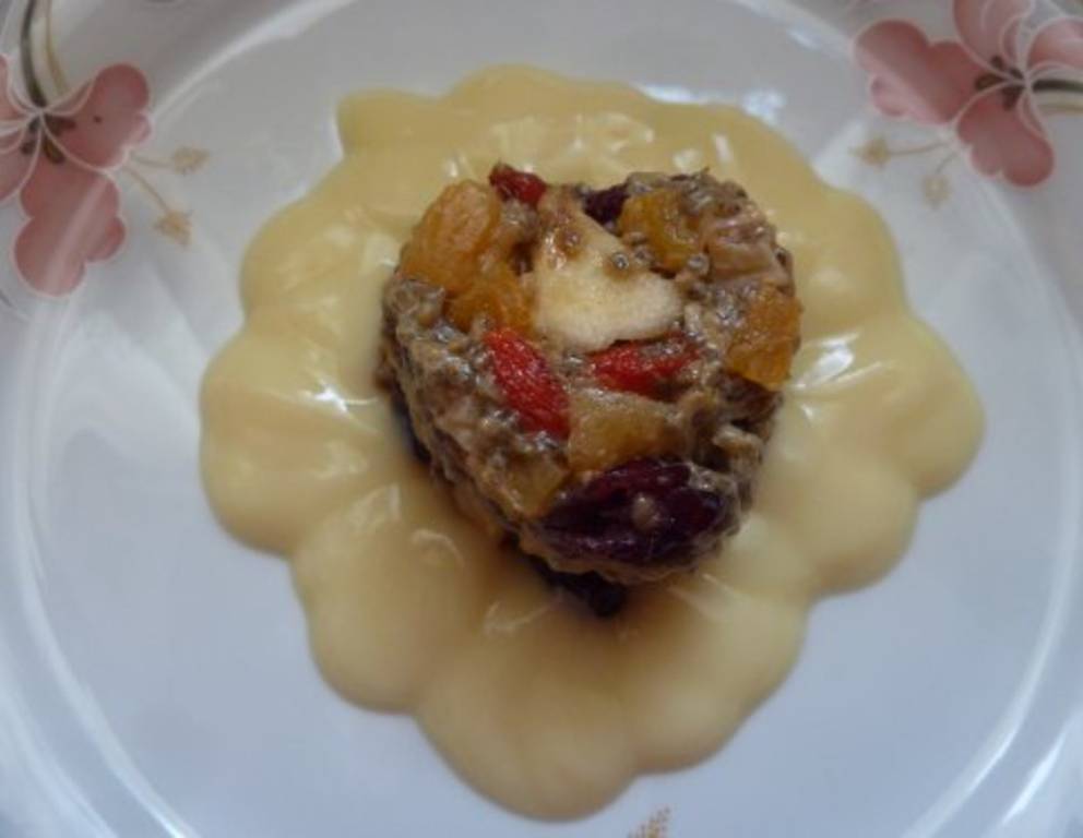 Man kann auch ohne Muffinförmchen aus der Chia-Puddingmasse ein Herz formen. Auch andere Trockenfrüchte schmecken in diesem Chia-Pudding-Herz.