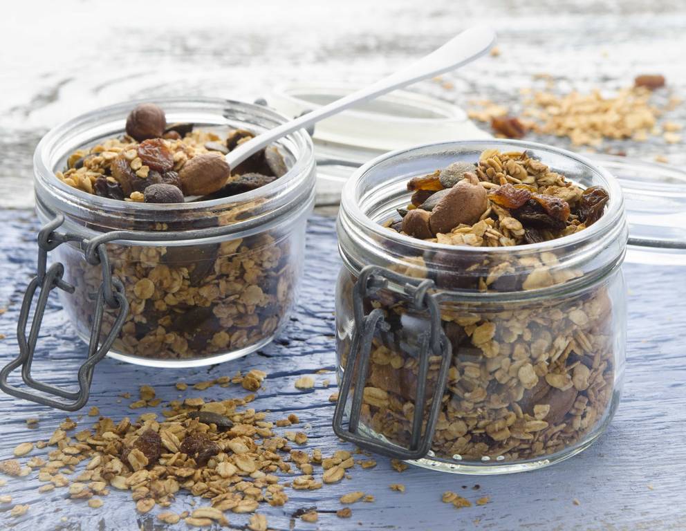- Das Knuspermüsli aus dem Backrohr nehmen, auskühlen lassen und mit den Rosinen mischen.