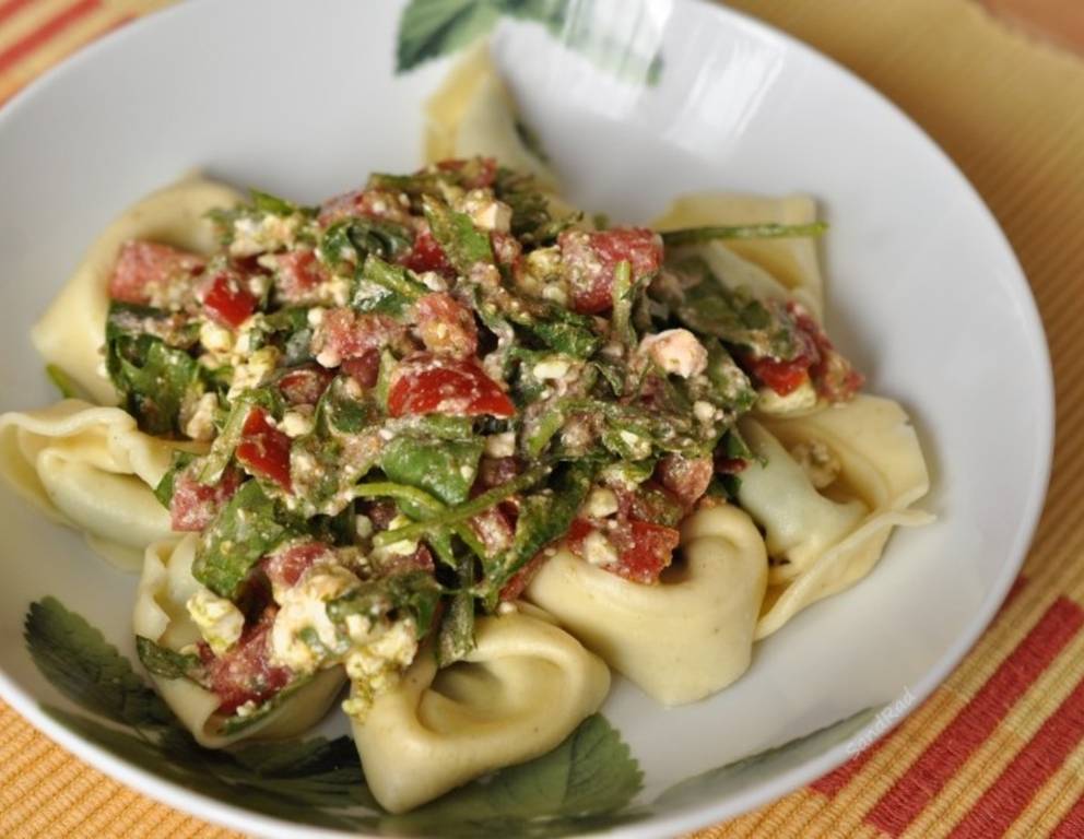 Rucola-Tomaten auf Pasta sind ideal für den Sommer. Man kann natürlich auch andere Nudeln wie Spaghetti oder Tagliatelle verwenden. Pro Person ca. 10 dag.