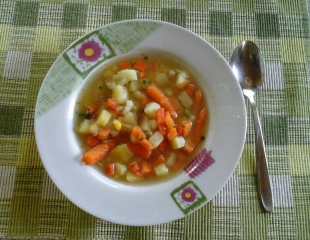 Frisches Gemüse der Saison verwenden. Die Frühlingssuppe schmeckt leicht, sommerlich und sogar an heißen Tagen.