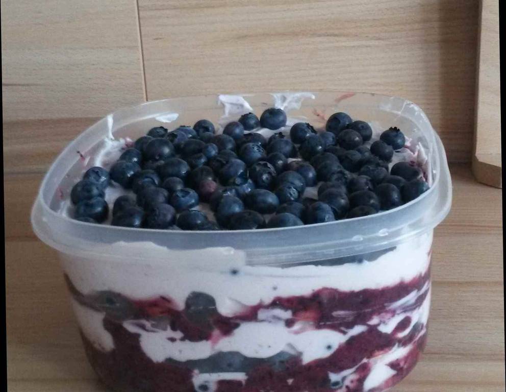 Wenn Heidelbeeren übrig bleiben kann man diese statt dem Kakao als eine Schicht Heidelbeeren über das Heidelbeertiramisu streuen.