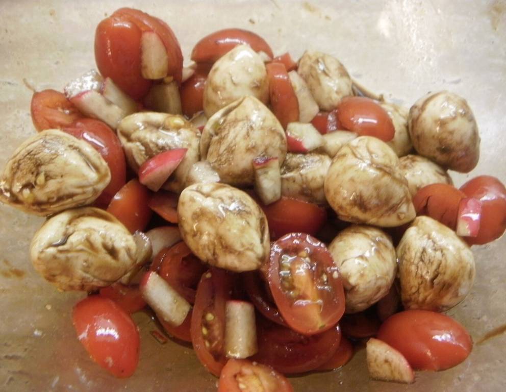 Statt Radieschen passen auch Paprika, oder Rucola oder andere beliebige Zutaten noch in den Tomaten-Mozzarella Salat.