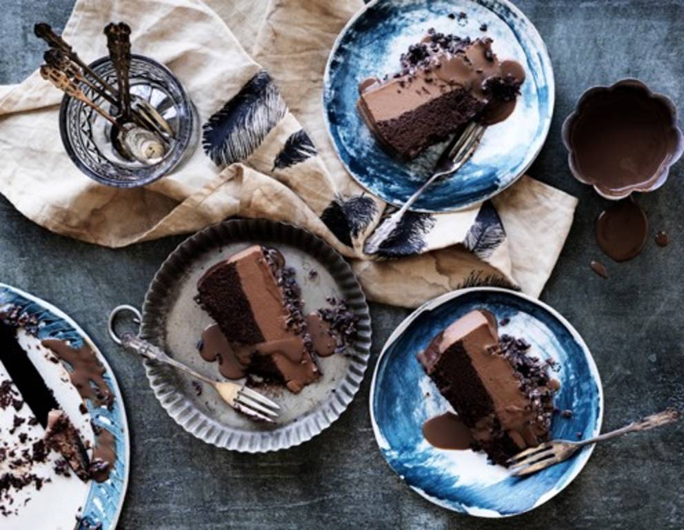 - Die helle Schokoladensauce zubereiten. Die Torte mit Kakaonibs bestreuen und mit warmer Sauce beträufeln. Die Torte sofort mit der restlichen Sauce servieren.