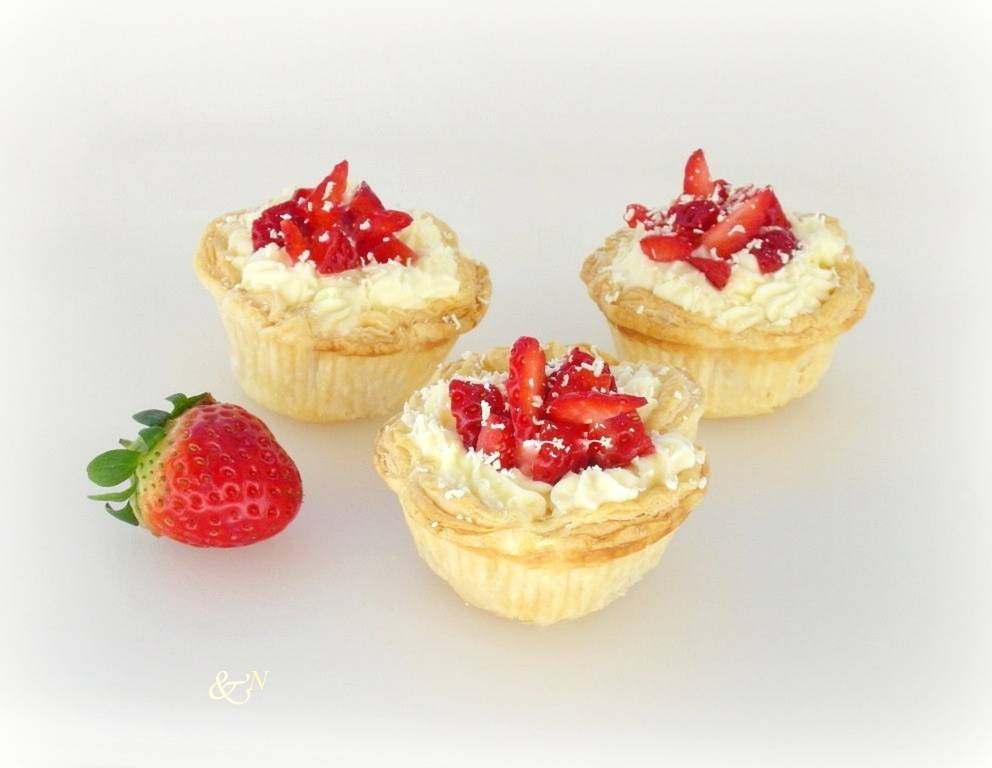 Blätterteig-Erdbeertörtchen sind eine Augenweide und eine wundervolle Abwechslung für die festliche Tafel, bei Kindern sehr beliebt. Die Creme und die Körbchen lassen sich gut vorbereiten. Wichtig ist, dass die Körbchen vor der Verzierung gefüllt sein sollen, sonst werden die Körbchen feucht, verlieren ihr hübsches Aussehen und sind nicht mehr knusprig.