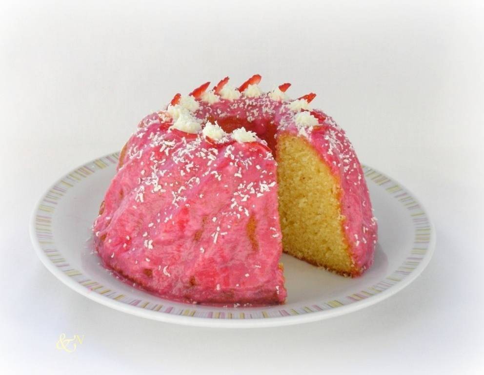 Der Gugelhupf mit Schoko-Erdbeer-Glasur ist auch nach 2 Tagen noch sehr saftig , locker und ausgesprochen schmackhaft!