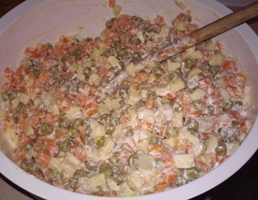 - Alles zusammen in einer Schüssel vermengen, mit der Jogonaise verrühren und die Leichte Gemüsemayonnaise mit Salz und Pfeffer abschmecken.