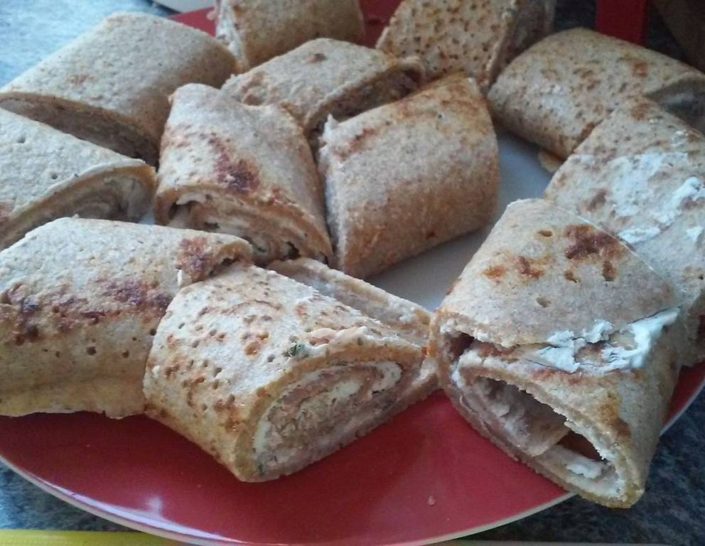 Wer möchte, kann statt dem Schinken auch geräucherten Lachs in ein paar der Pikant gefüllten Palatschinkenröllchen geben.