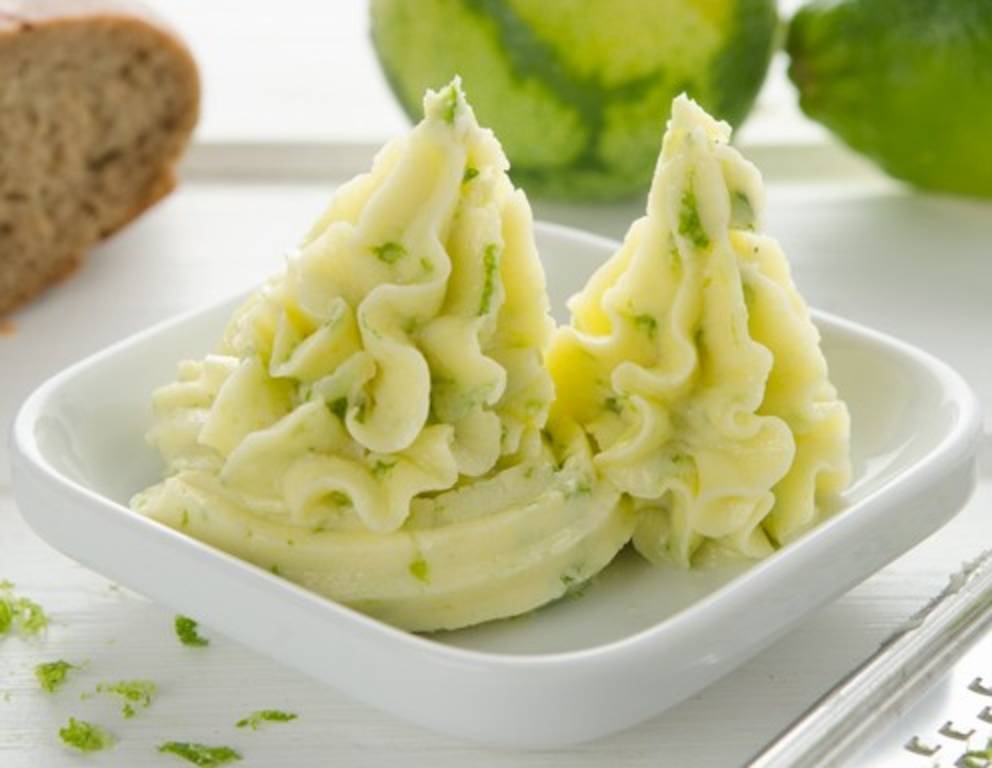 - Die noch weiche Limettenbutter mit Parmesan in einen Spritzsack füllen, portionieren und für Mindestens 20 Minuten in den Kühlschrank stellen.
