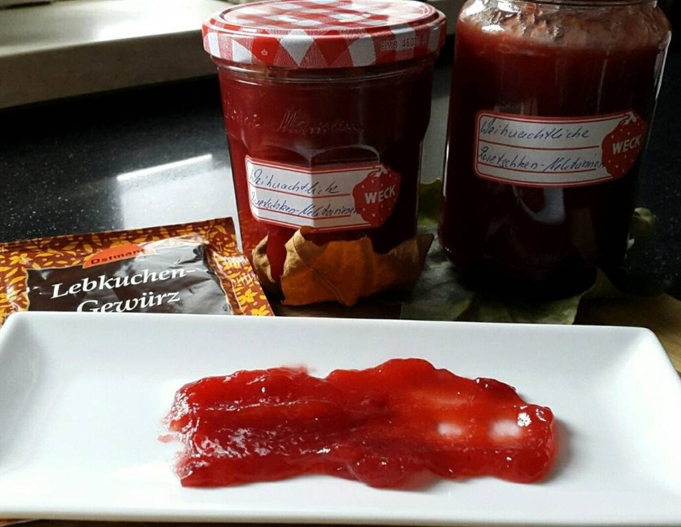 - Dabei gut umrühren und falls die Fruchtstücke zu groß sind, noch einmal mit dem Pürierstab pürieren. Kurz vor Schluss noch das Lebkuchengewürz gut unterrühren.