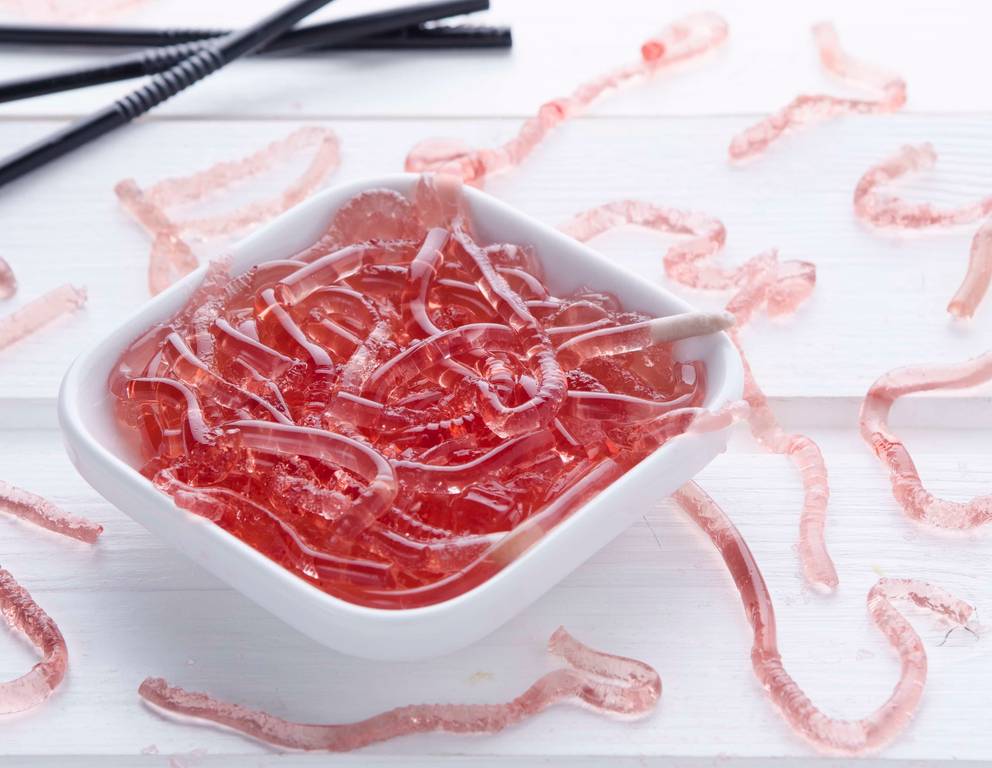 Natürlich können glitschige Würmer auch mit einem anderen Saft (z.B. roter Traubensaft) ganz nach eigenem Geschmack hergestellt werden.