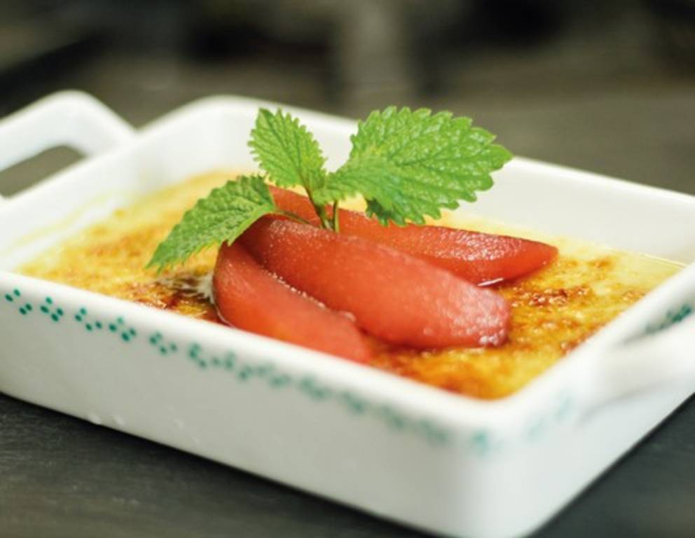 Die Birnen für die Steirische Creme mit Gewürzbirne am Vortag vorbereiten, damit sie die rote Farbe vom Saft und den Geschmack der Gewürze annehmen.