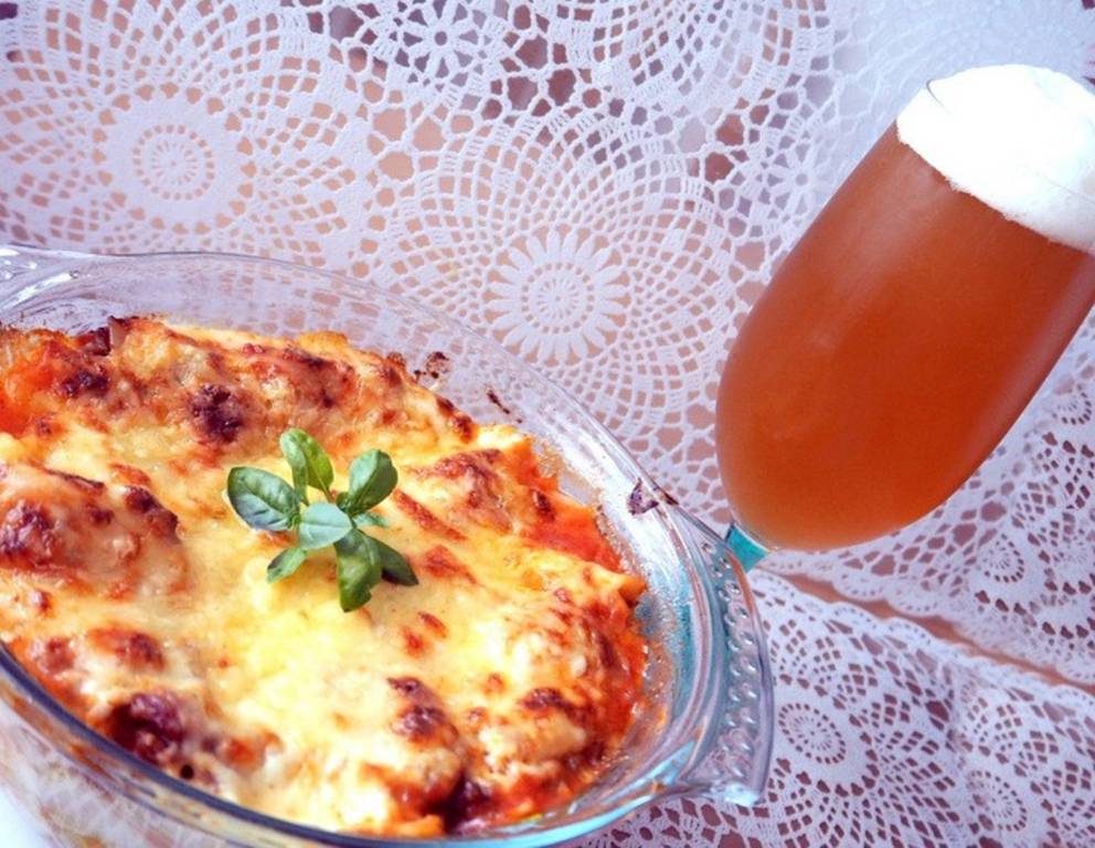Ein Märzen - ein malz- und karamellbetontes Vollbier mit ausgeprägtem Körper - rundet die Lasagne ab.
