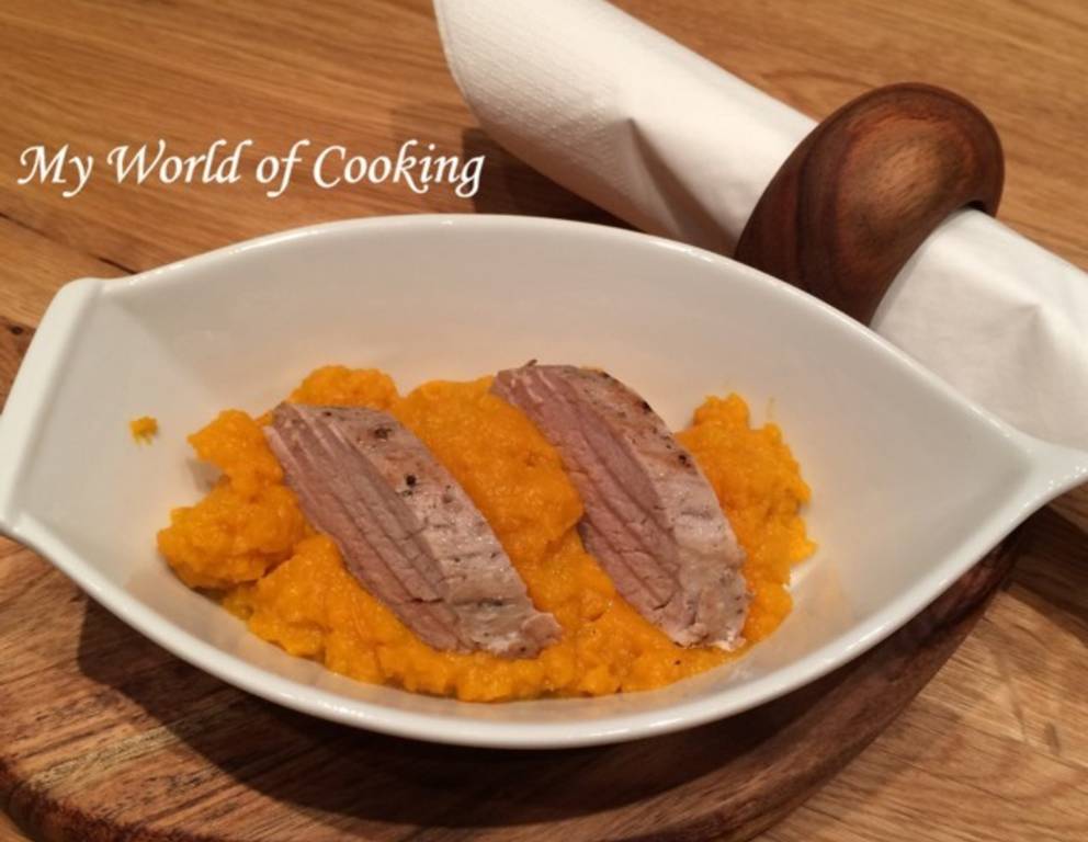 Das Püree passt sehr gut zu Fisch und allen Fleischsorten. Besonders gut schmeckt Schweinsfilet dazu.