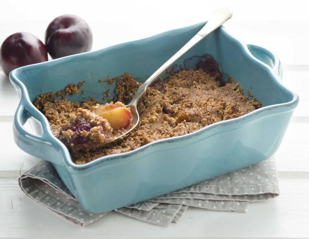 - Den Zwetschken-Keks-Crumble noch warm servieren.