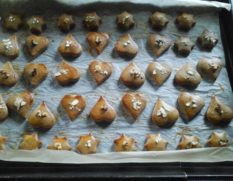 - Am nächsten Tag den Teig auf einer bemehlten Arbeitsfläche ausrollen und mit kleinen Ausstechern Formen ausstechen. Die Figuren auf ein mit Backpapier ausgelegtes Backblech legen.