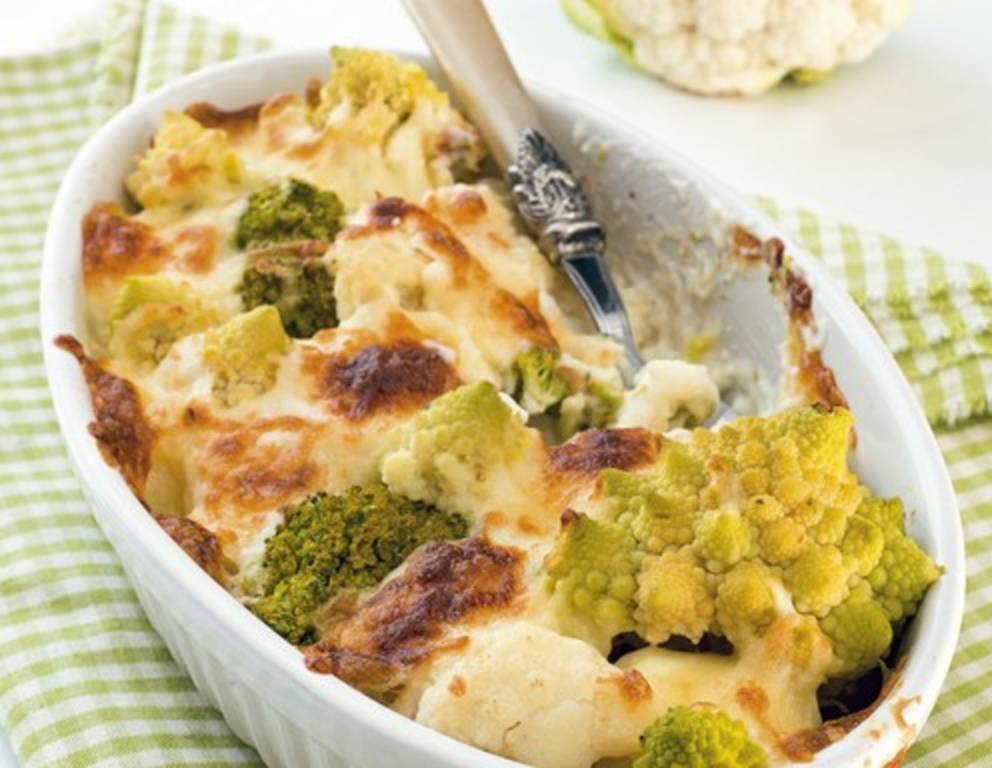 - Für den Karfiolauflauf das Gemüse im Ganzen 20 Minuten dampfgaren. Den Käse reiben.