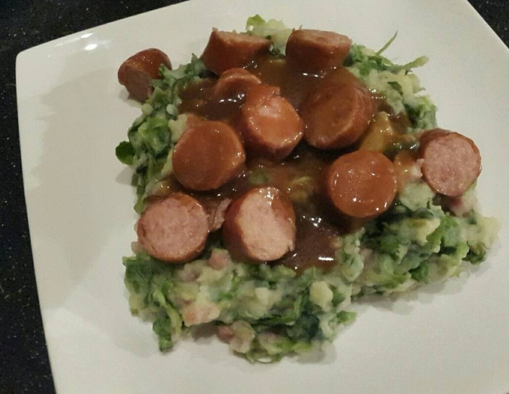 - Den Endivien-Kartoffel-Stampf mit Rauchwurst servieren und genießen.