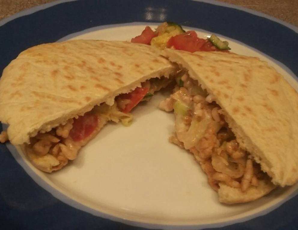 Sie können auch ein paar Zwiebelringe oder, wenn Sie es scharf mögen, Chiliflocken in die gefüllte Pita geben.