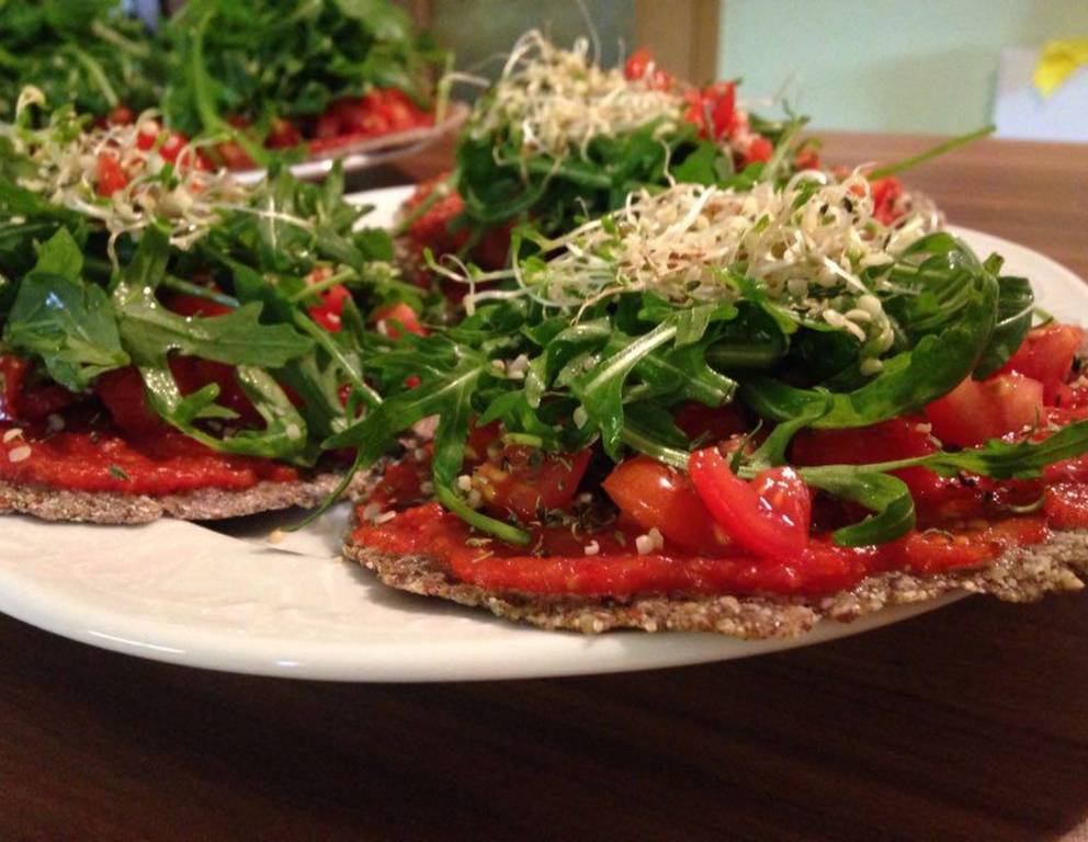 Die Pizzaböden für rohköstliche Mini-Pizzas mit Rucola sind bis zu 2 Wochen lagerfähig und können dann so wie sie sind verwendet werden. Die Pizza kann auch ganz beliebig mit Mais, getrockneten Champignons, Oliven, Artischocken oder Knoblauch belegt werden.