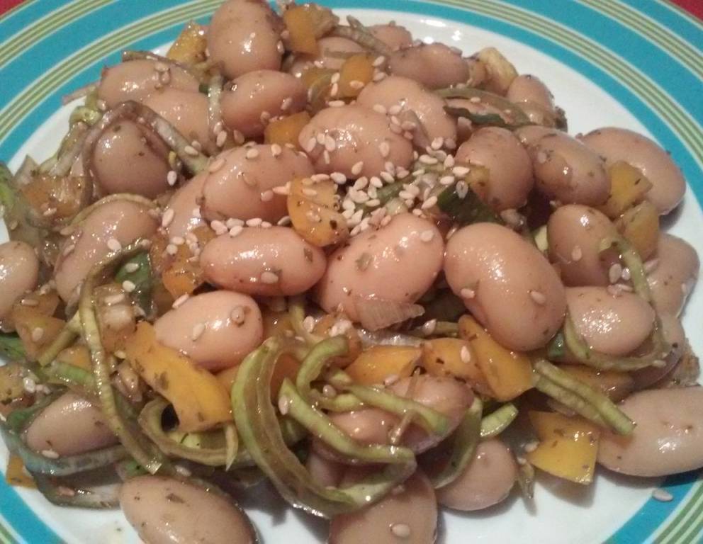 - Zusammen mit den Bohnen und dem Sesam in einer Schüssel vermengen, mit dem Öl und Essig marinieren und den Lauch-Riesenbohnensalat mit Sesam mit Gewürzen abschmecken.