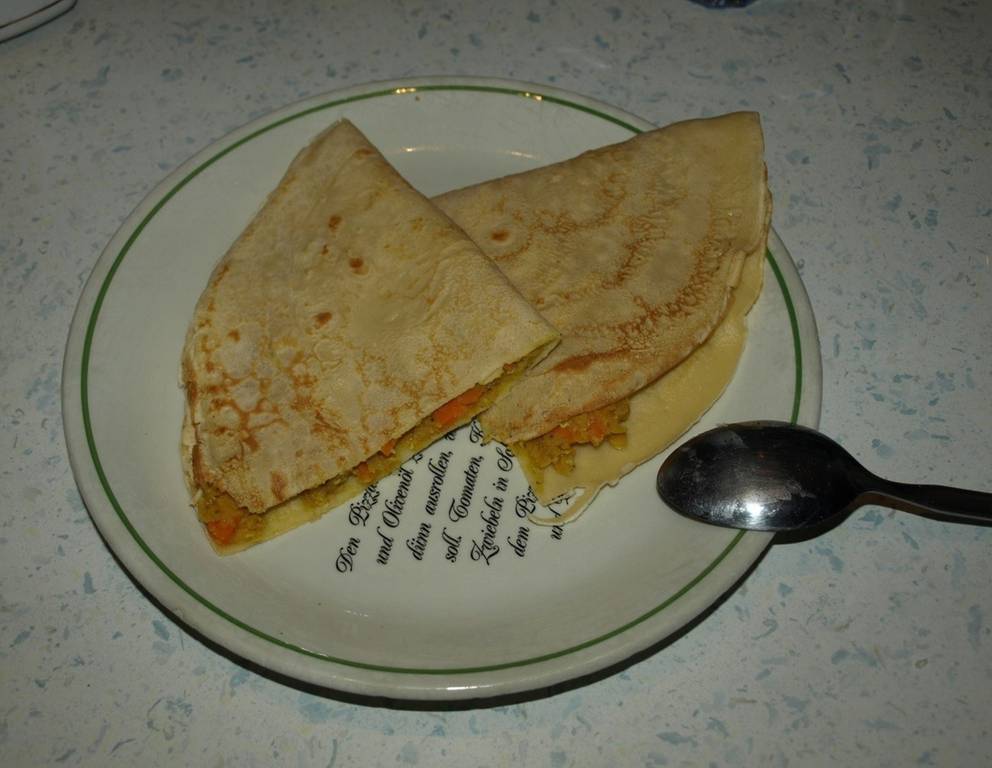 - Salzen, abschmecken und eventuell nachwürzen. Die rote Linsen-Curry Füllung reicht für 4 Palatschinken.