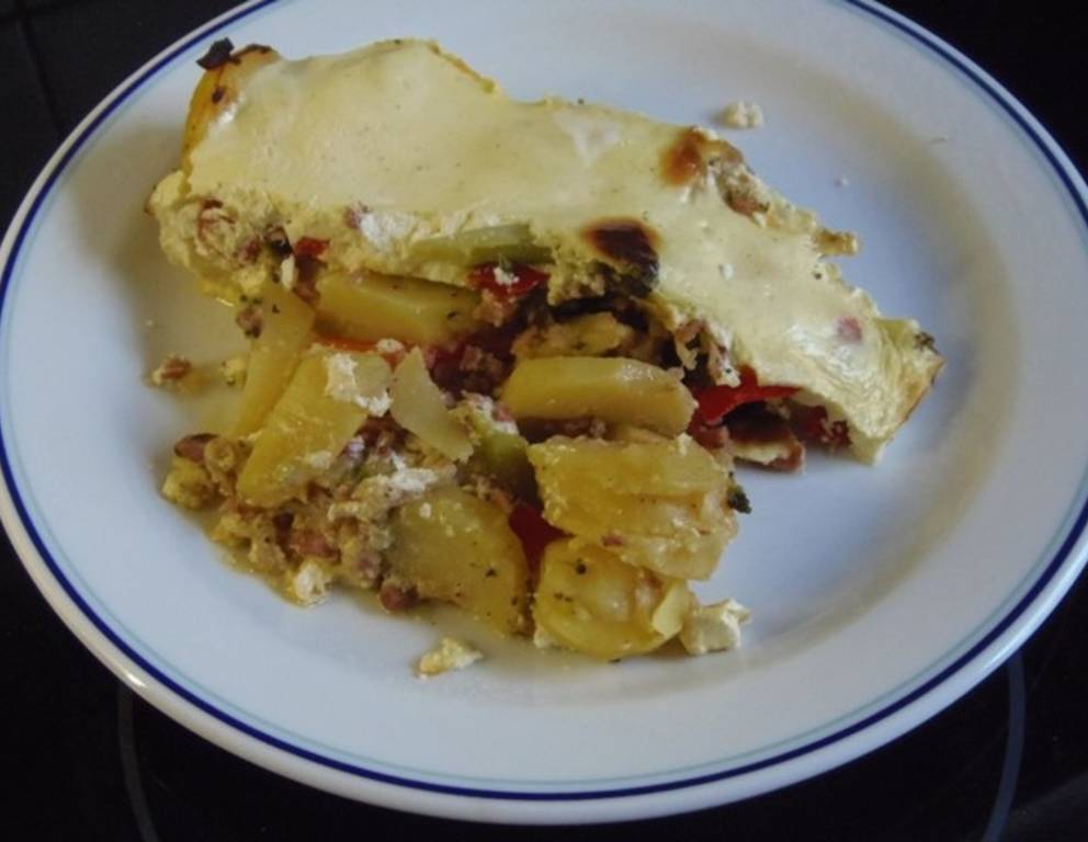 - Topfen mit Sauerrahm und den Eiern verrühren und über die Kartoffelmasse gießen. Die Kartoffel-Speck-Pfanne im vorgeheizten Backrohr bei 175 ° etwa 20 Minuten backen.