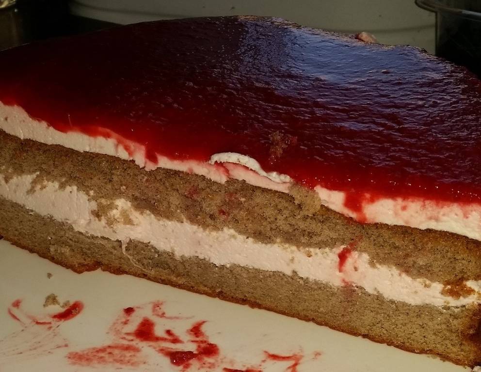 - Die aufgelöste Gelatine unter die Himbeersauce rühren und auf die Torte geben und glatt streichen. Die Torte dann einige Stunden, am Besten über Nacht, kalt stellen.