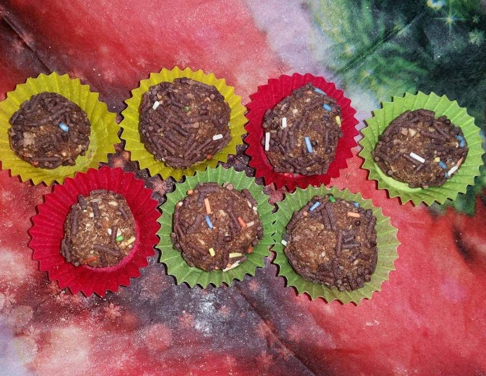 - Die Hände anfeuchten und Kugeln formen. Die Rumkugeln anschließend in den Streuseln wenden und in kleine Pralinenförmchen geben.