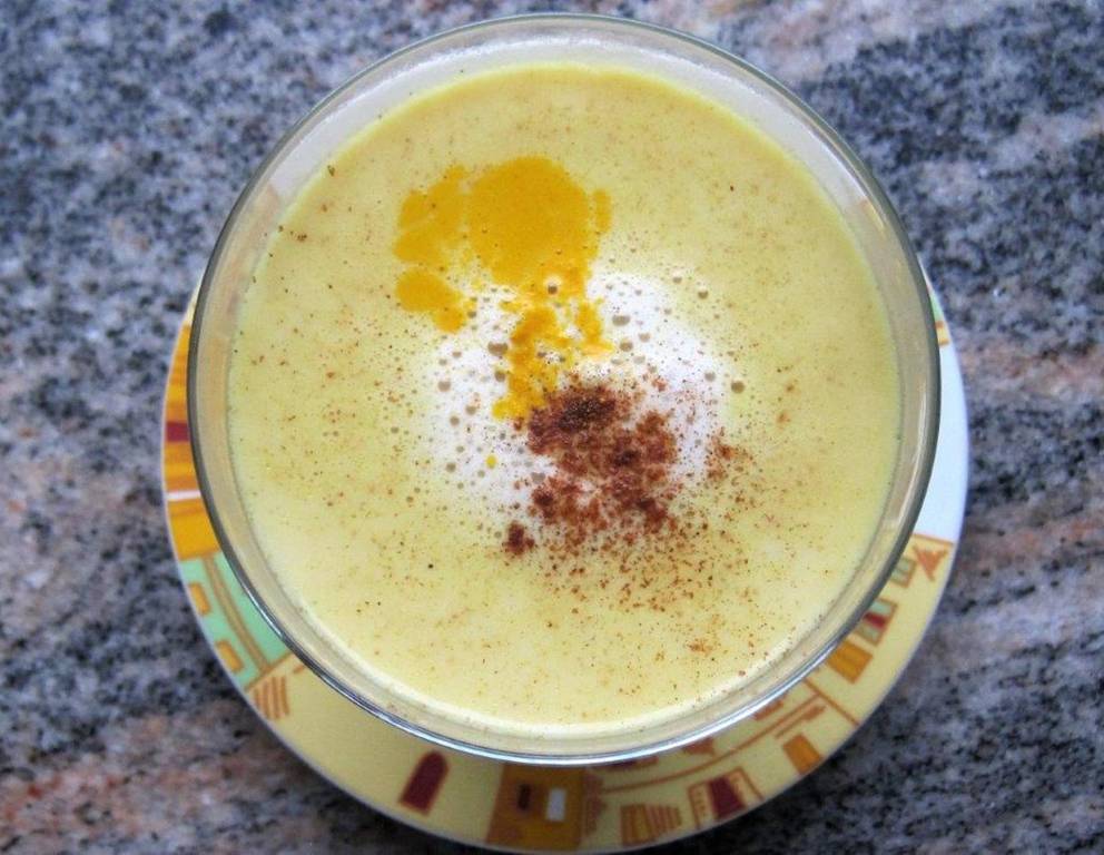 Etwas heiße Mandelmilch mit einem Milchaufschäumer aufschäumen und vorsichtig auf dem Kurkuma Latte platzieren. Geben Sie noch etwas Pfeffer dazu, so können die ganzen guten Inhaltsstoffe des Kurkuma besser vom Körper aufgenommen werden.