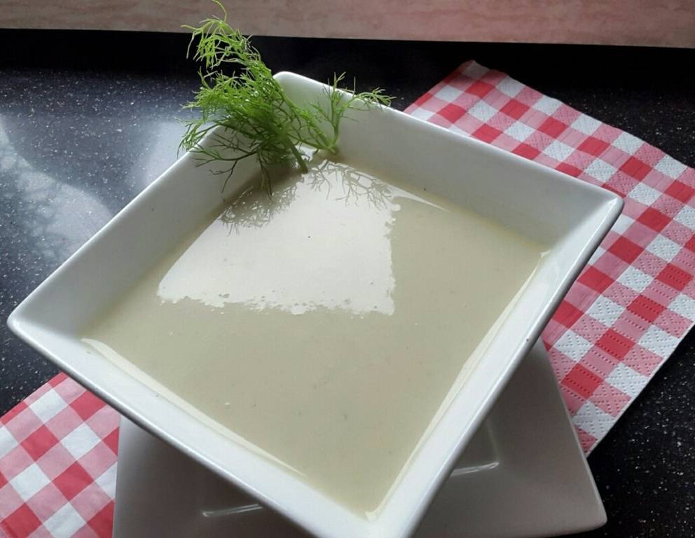 - Mit Pfeffer und Salz abschmecken. Die cremige Fenchelsuppe auf vier vorgewämte Schälchen verteilen und mit dem Fenchelgrün garnieren.