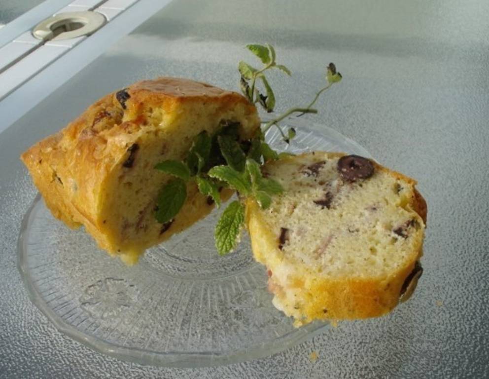 - Speck, Oliven und Käse untermischen. Teig in eine gefettete Kastenform füllen und den Olivenkuchen ca. 40 Minuten bei 180° backen.