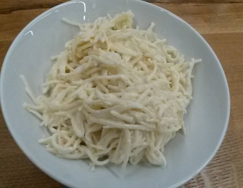 Der Selleriesalat schmeckt hervorragend als Beilage zu Schweinefleisch.