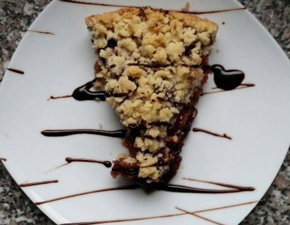 - Den Rest des Teiges ausrollen und damit den Rand auslegen. Mit den Zwetschken fächerförmig von außen nach innen belegen. Alle Zutaten der Streusel verkneten. Die fertigen Streusel gleichmäßig auf den Kuchen verteilen.