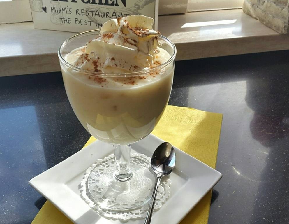 - Kurz vor dem Servieren noch einen Tupfer Schlagobers auffüllen und mit Zimt bestäuben.