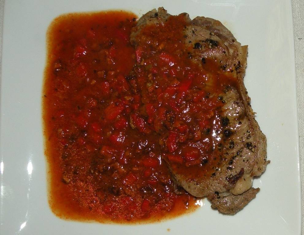 - Restliche Paprikawürferl in die Sauce geben. Beiried auf zwei Tellern anrichten, das Fleisch mit Sauce übergießen.