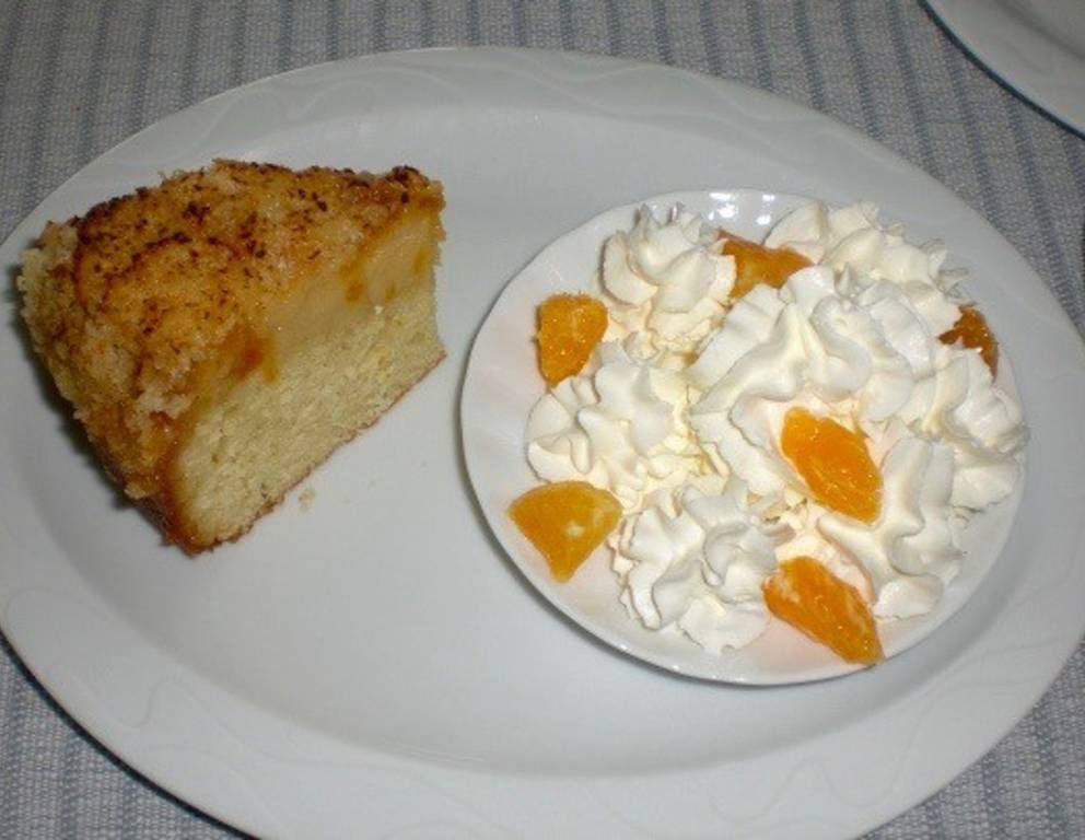 Den Mandel-Orangenkuchen am besten mit etwas geschlagenem Schlagobers und Orangenfilets anrichten.