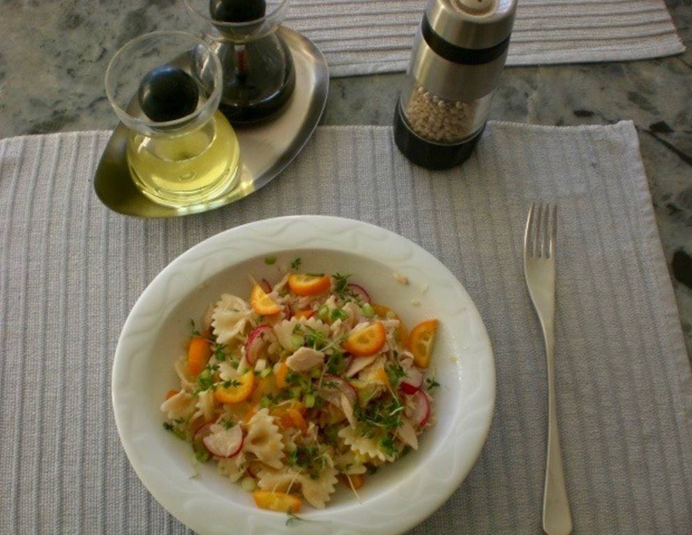 Hier sollte bestenfalls nichts übrig bleiben, da der Thunfisch-Nudel Salat durch die Kumquat bitter wird, frisch ist der Geschmack einfach toll.