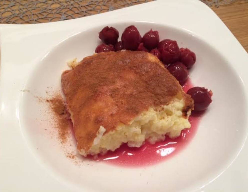 Am besten schmeckt der Reisauflauf mit einem Früchtekompott! Nach Belieben kann man den Auflauf noch mit Zimt oder Zucker bestreuen.