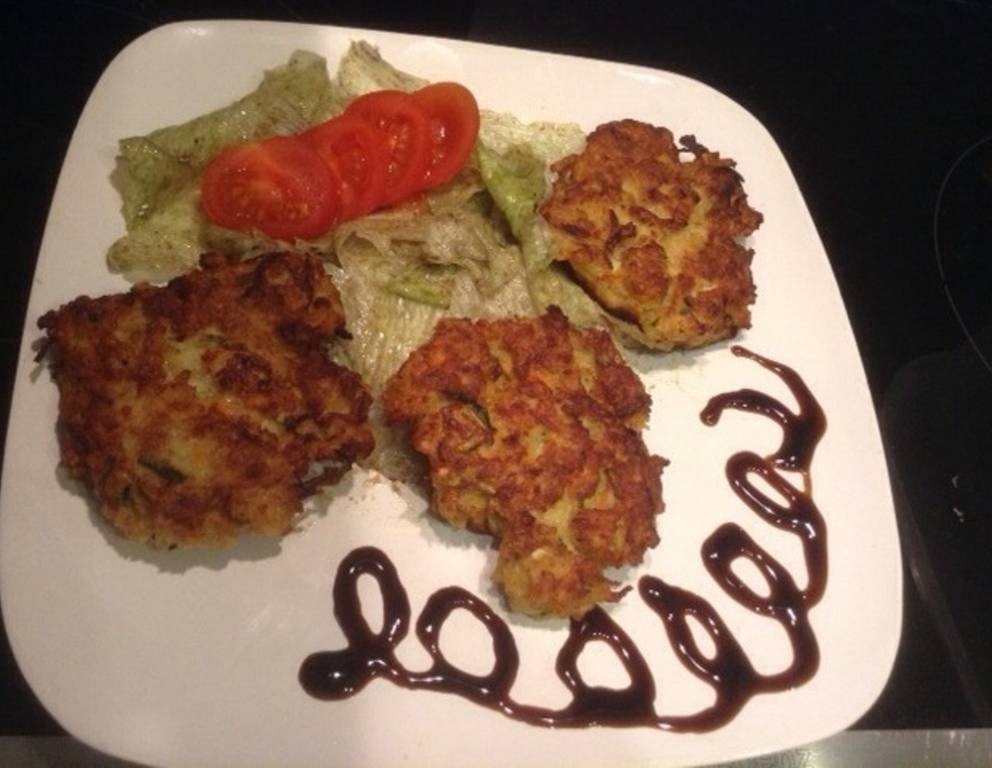 - In einer Pfanne reichlich Öl erhitzen und mit einem Löffel mittelgroße Häufchen in die Pfanne geben. Diese leicht flach drücken. Die Geflügellaibchen auf beiden Seiten goldgelb braten.