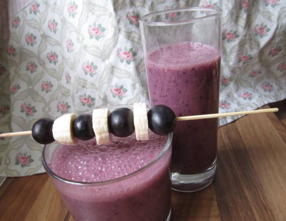 Der Traubensmoothie kann auch ohne Agavensirup gemacht werden. Am besten verwendet man sehr reife Bananen. Das gibt dem Smoothie eine schöne Süße.