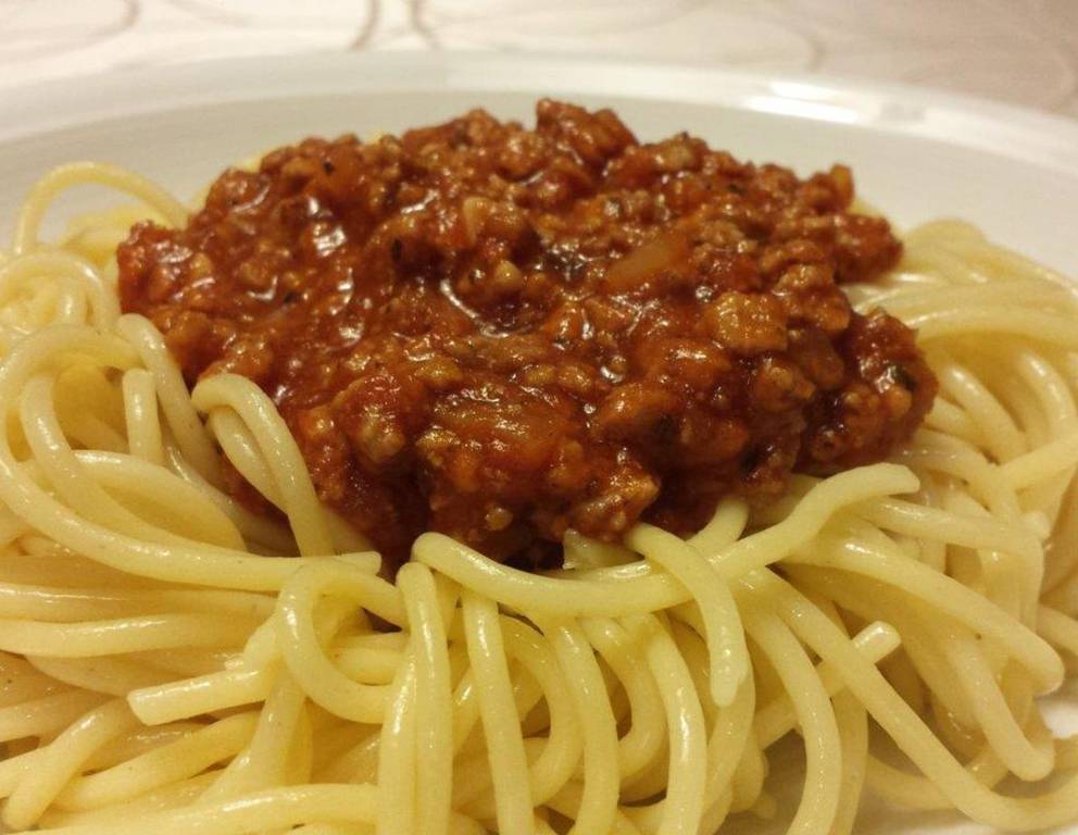 - Für die exotischen Spaghetti Bolognese die fein gewürfelte Zwiebel in etwas Olivenöl anschwitzen und aus der Pfanne nehmen. Das Faschierte ebenfalls in etwas Olivenöl braten, bis es gar ist.