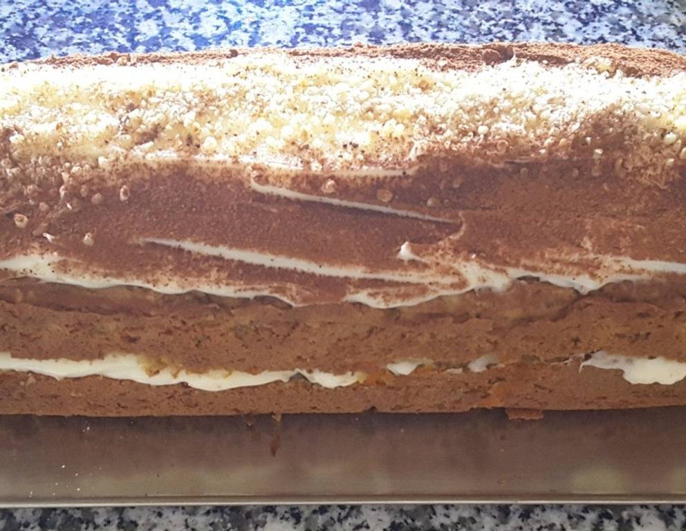 - Ein wenig geriebene Muskatnuss vom Zimt hinzufügen. Am Schluss die geriebenen Karotten hinzugeben und verühren. Bei 150° C ungefähr eine Stunde backen.