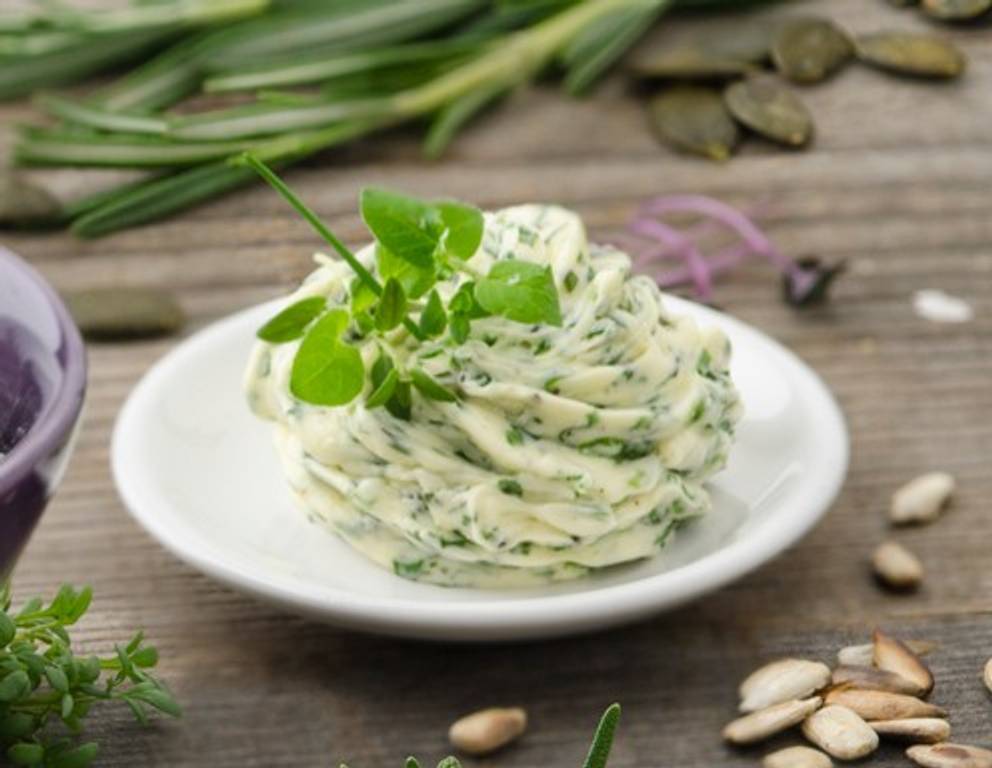 Verwenden Sie die Kräuterbutter zum Beispiel zum Grillen für Fleisch oder Baguette.