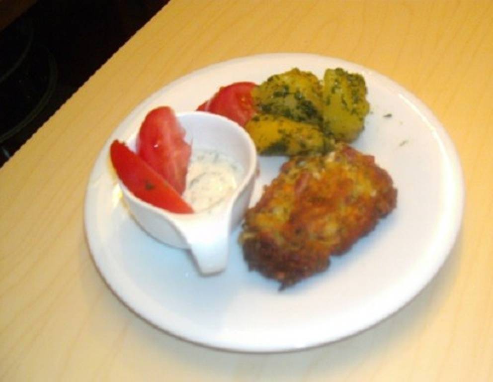 - Danach daraus Laibchen formen und diese in Mehl wenden. In einer Pfanne kurz von beiden Seiten anbraten. Backblech mit Wasser benetzen, die Laibchen auf ein Backpapier auflegen mit Olivenöl beträufeln und bei 180 Grad Ober/Unterhitze für 35 Minuten in den Backofen geben.